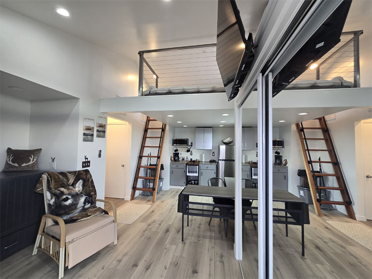 built, 345 square foot modern Studio apartment with Sleeping Loft;