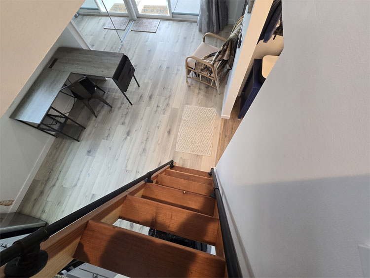 ladder-stairs, a queen bed can be set up on the ground floor. Property owner